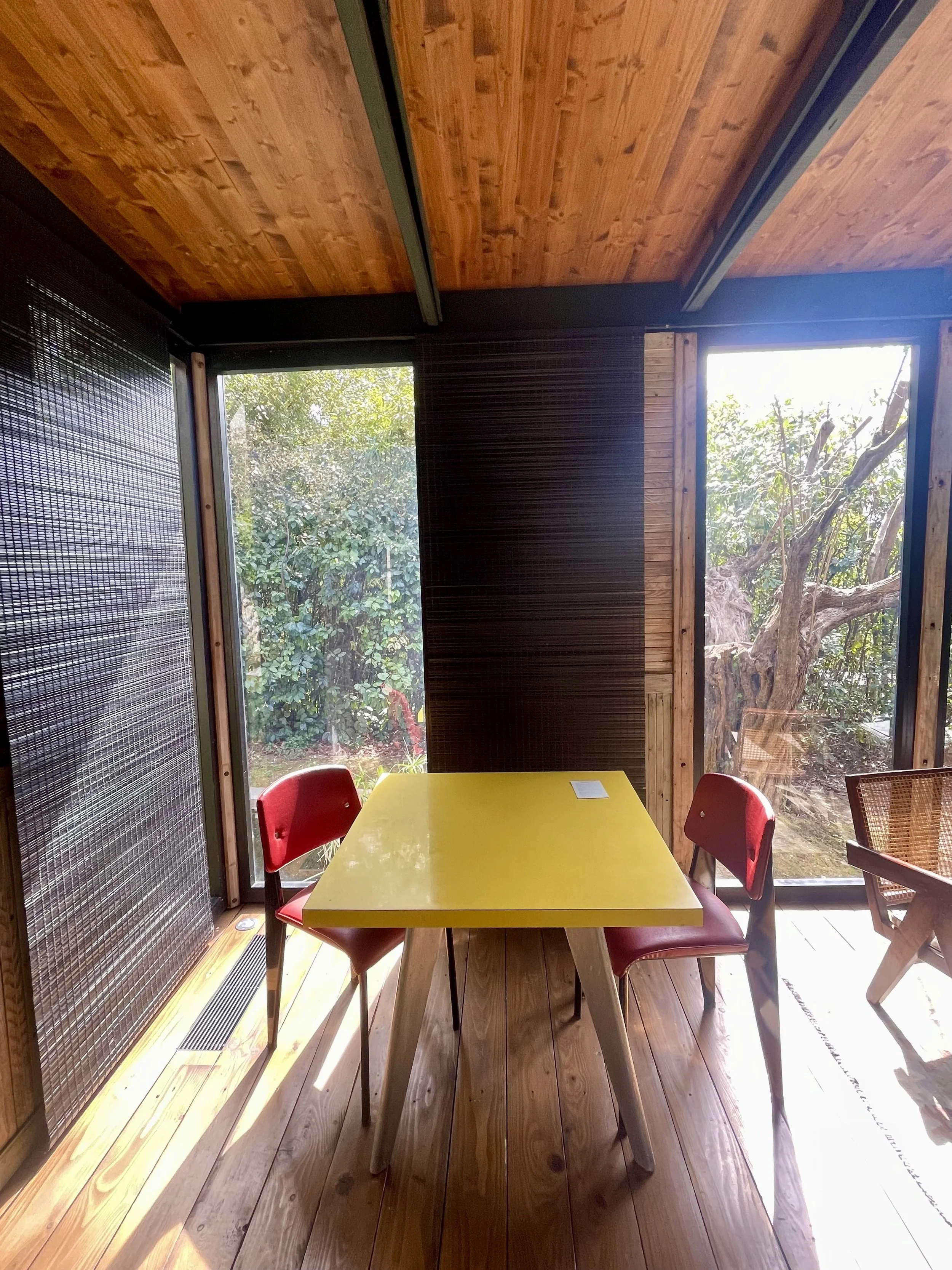 Such a magical town has been the perfect spot for Fondation CAB to establish in a stunning 50’s building renovated by french architect Charles Zana which houses several exhibition spaces, the bookshop, the Sol restaurant and 3 guest rooms divinely decorated with original furniture by post war masters like Charlotte Perriand , Jean Prouvé or Le Corbusier and fantastic original artworks overlooking the Cap d’Antibes .To have the ultimate design living experience you can also sleep in Jean Prouvé’s cabanon built the visionary constructor of the 20th century.